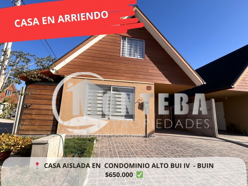 Monteba propiedades arrienda bella propiedad aislada emplazada en sector residencial del a comuna de Buin en Condominio Alto Buin IV en el sector de Buin Oriente, el conjunto se caracteriza por ser muy familiar con áreas verdes y plaza de juegos para los más pequeños.